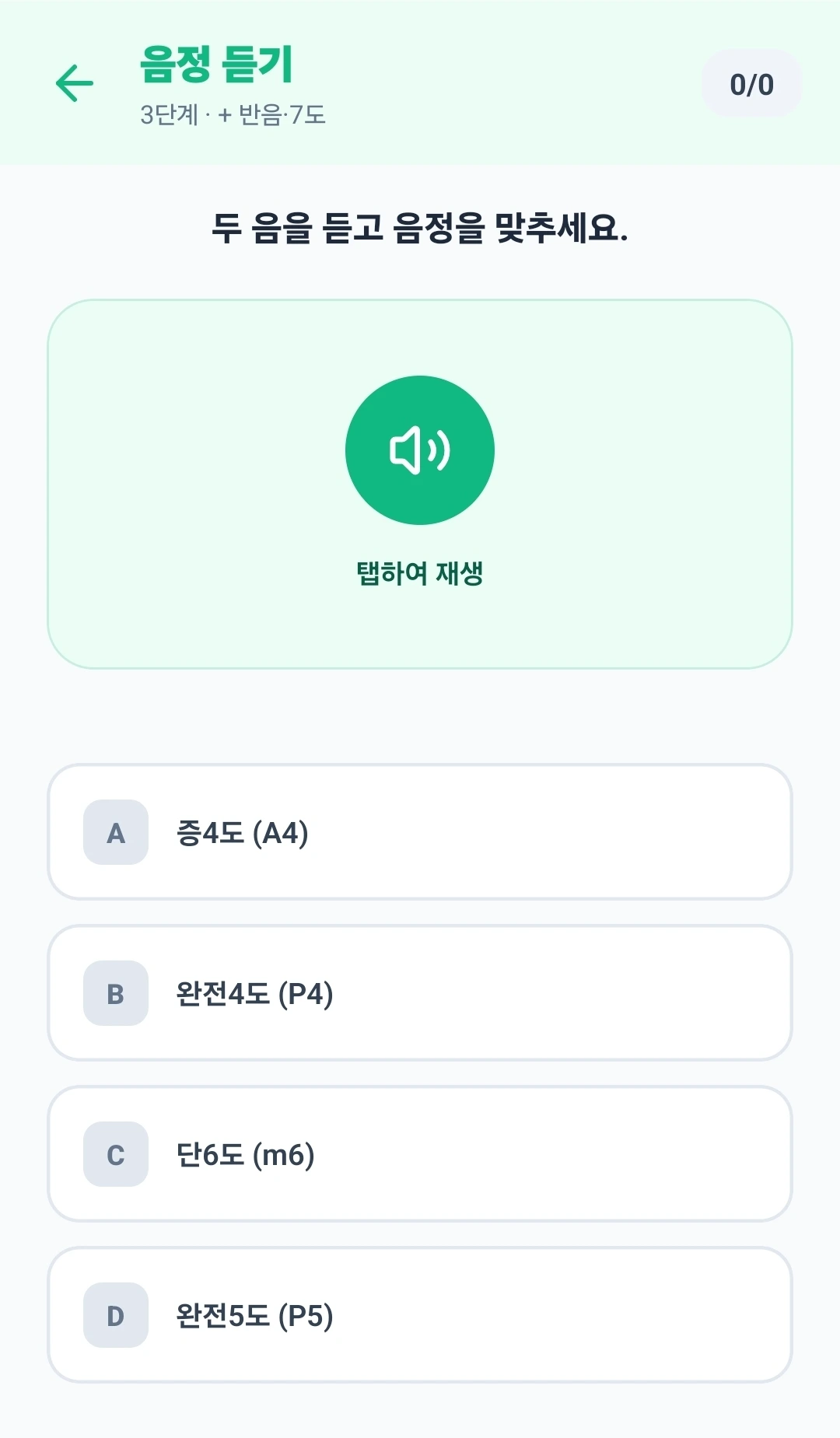 복잡한 설정 없이 앱을 열면 바로 청음 훈련을 시작할 수 있습니다.